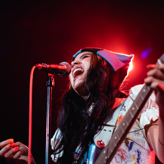 The Blossom kicked off the show and I was immediately taken aback by their presence. Sydney-born frontperson, Lily Lozette bopped around stage, cheekily revealing boxer briefs beneath their puffy short dress. Like the lovechild of Baby Spice and a Power Puff Girl, Lozette was cute, empowered, and had everyone’s attention.